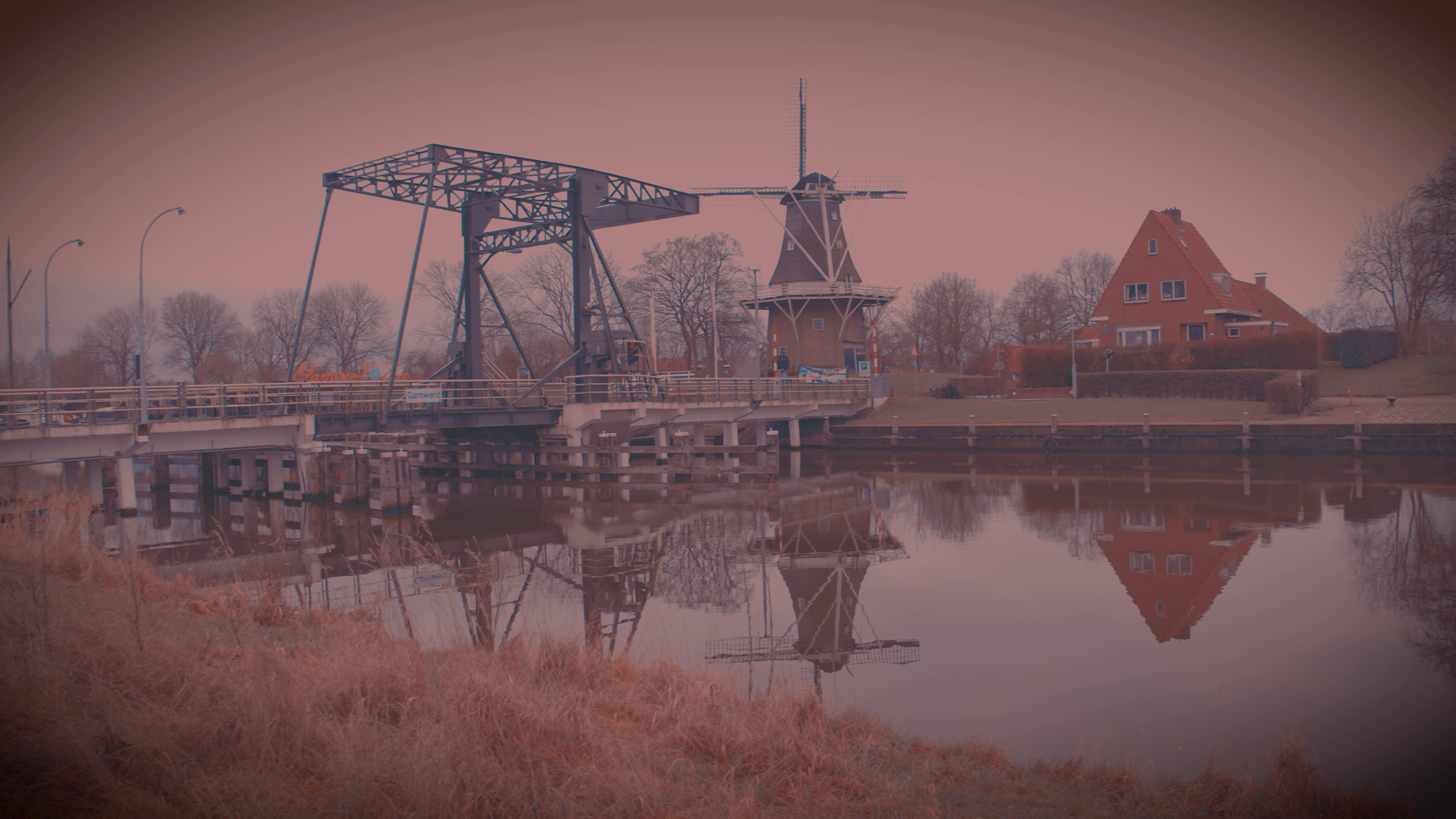 in het Nederlands is “Sluizen en een brug in de provincie. Nederland staat bekend om zijn waterwerken.